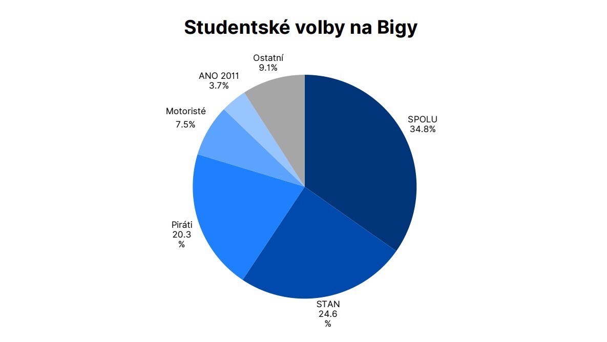 Ve čtvrtek 18. září dopoledne se na Bigy uskutečnily studentské volby, které probíhaly v rámci celostátního projektu JSNS. Naši studenti si tak mohli vyzkoušet atmosféru skutečných parlamentních voleb a dát hlas stranám či hnutím podle svého uvážení. Nejvíce hlasů získala koalice SPOLU (65), následovalo hnutí STAN s 46 hlasy a Piráti s 38 hlasy. Překvapením byla také podpora hnutí Motoristé sobě (14 hlasů) a své zastánce našlo i ANO 2011 (7 hlasů). Ostatní strany získaly jen několik jednotlivých hlasů. Výsledky ukázaly, že i mezi mladými panuje rozmanitý politický pohled a chuť se zapojit.